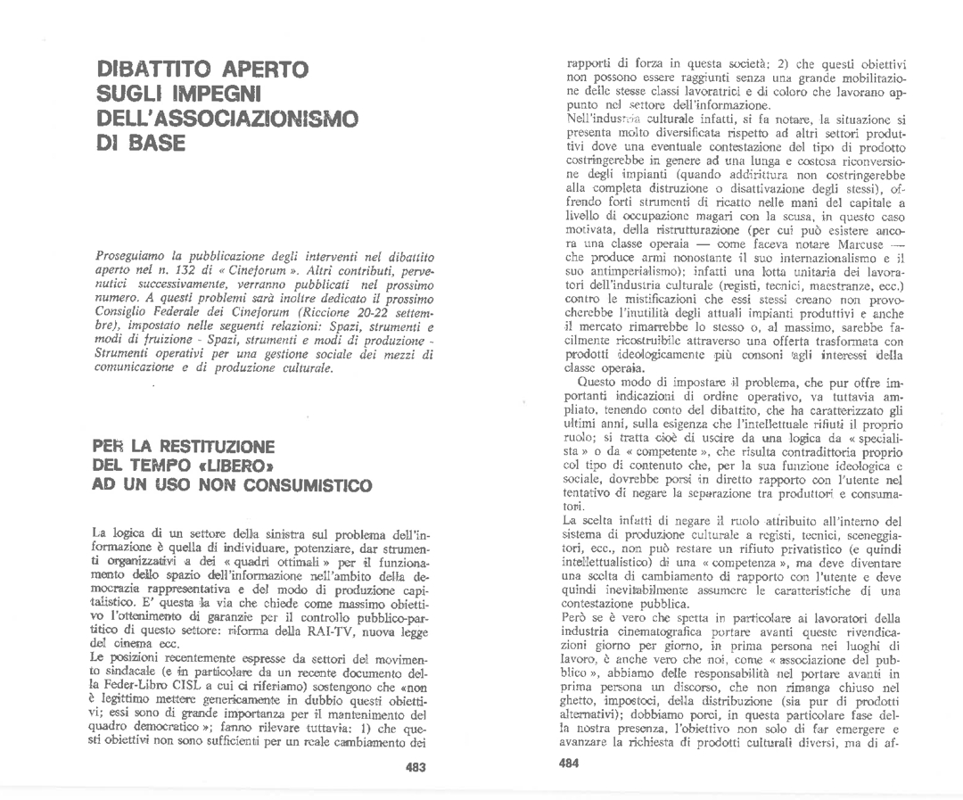 "Per la restituzione del tempo libero ad uso non consumistico"