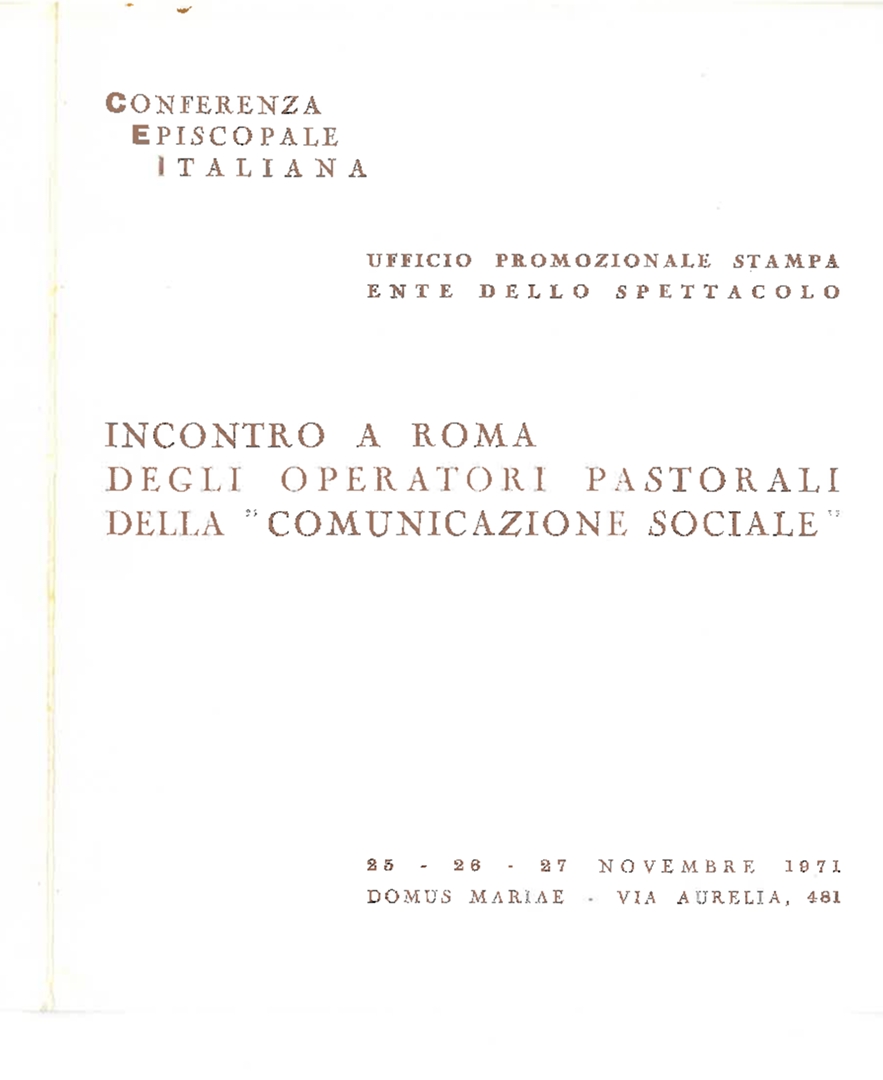 "Incontro a Roma degli operatori pastorali della comunicazione sociale", Roma 25-27 novembre 1971