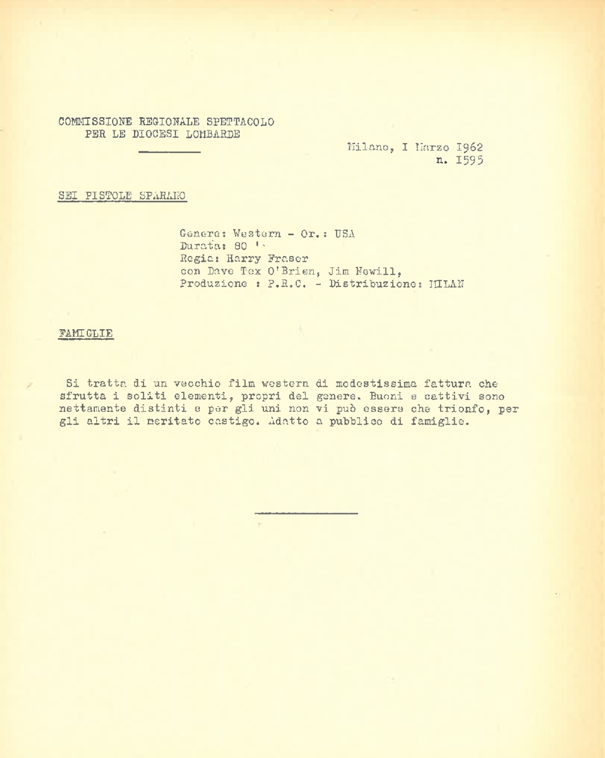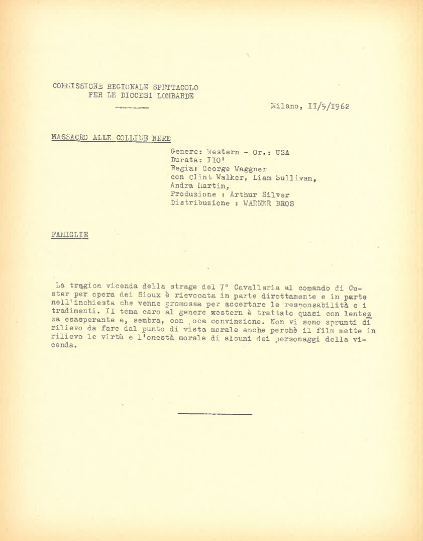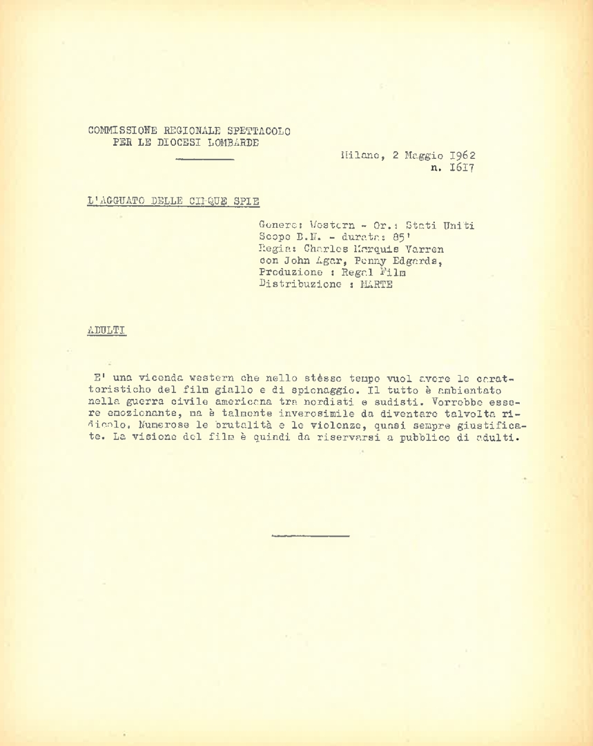 Classificazione di film, a cura della Commissione regionale spettacolo per le diocesi lombarde