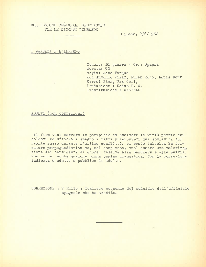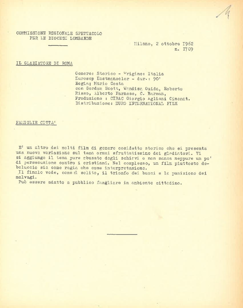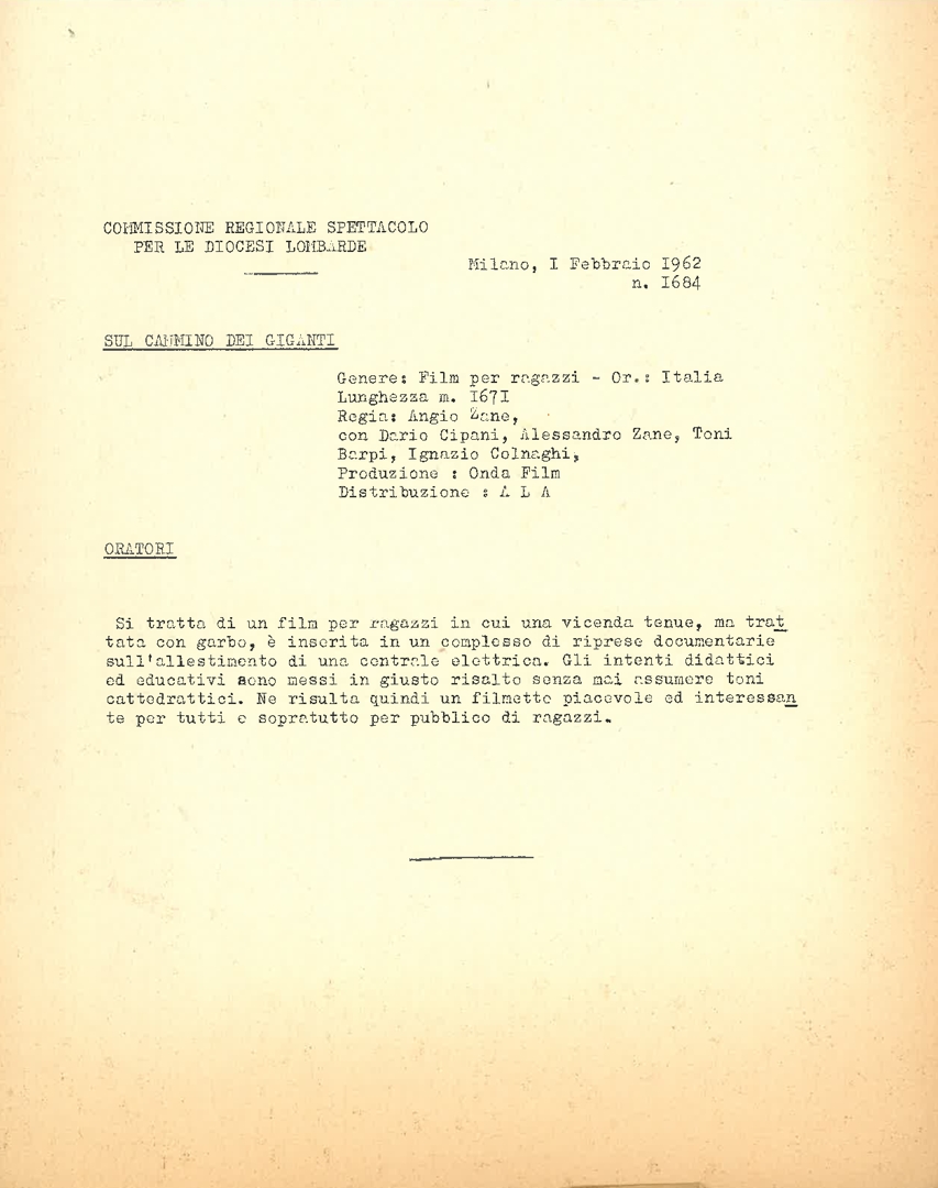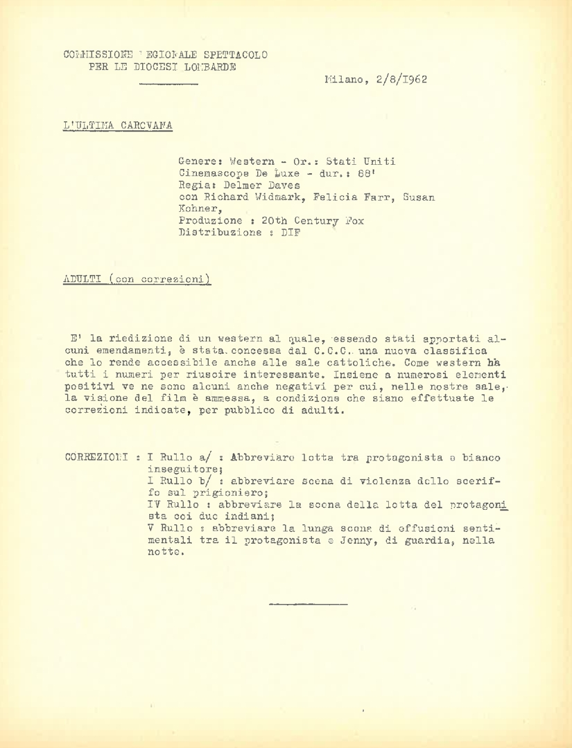Classificazione di film, a cura della Commissione regionale spettacolo per le diocesi lombarde
