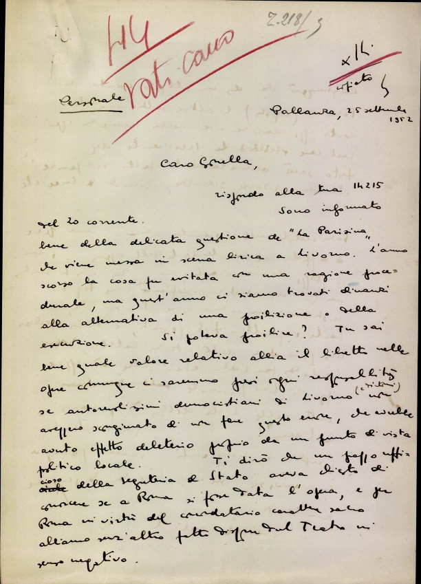 Lettera non firmata indirizzata all'on. Guido Gonella, segretario politico della Democrazia cristiana