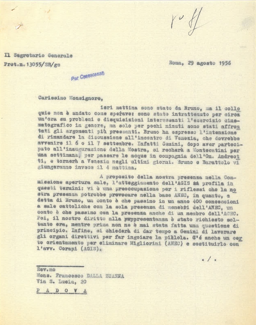 "Argomenti trattati con l'on. Brusasca nell'incontro del 7-9-56 a Venezia"