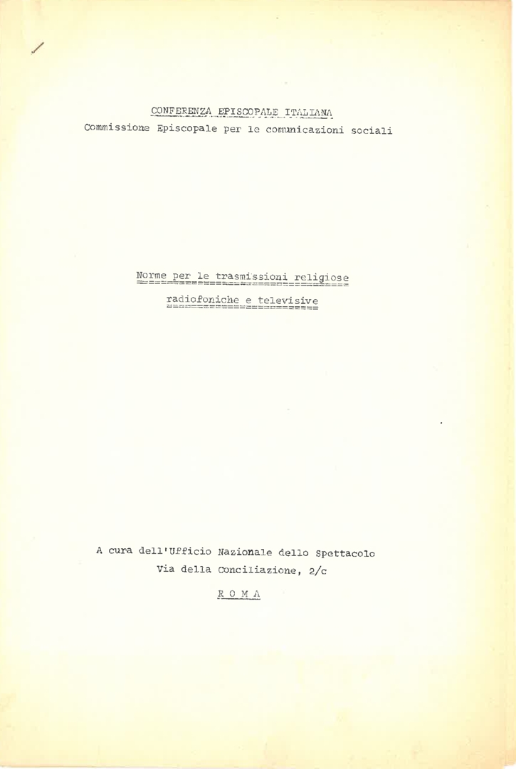 "Norme per le trasmissioni religiose radiofoniche e televisive" a cura dell'Ufficio nazionale per lo Spettacolo della Commissione della Conferenza Episcopale Italiana per le comunicazioni sociali