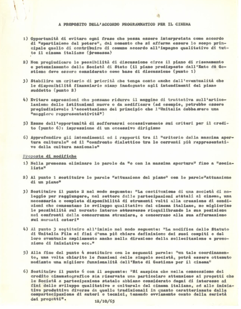 Schema di accordo programmatico per la programmazione cinematografica. Prima bozza