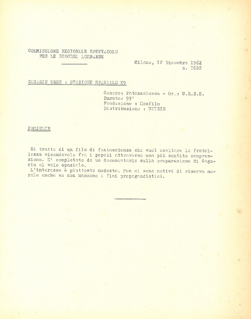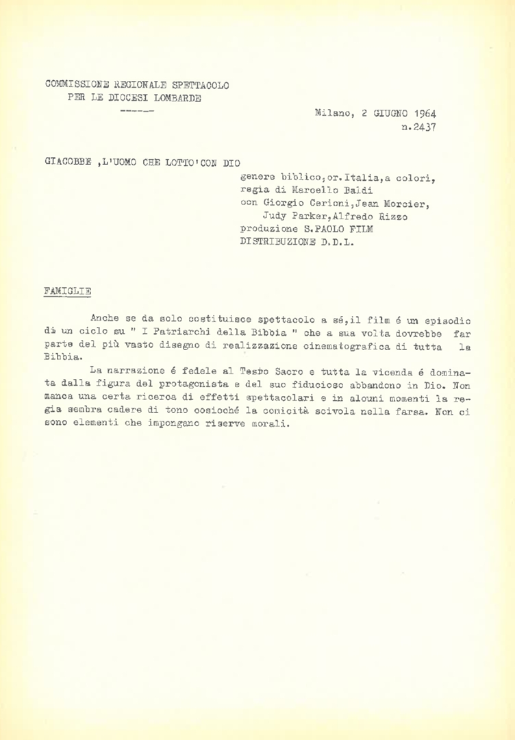 Classificazione di film, a cura della Commissione regionale spettacolo per le diocesi lombarde