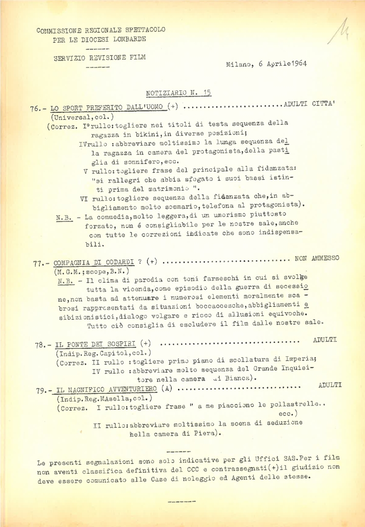 Commissione regionale spettacolo per le diocesi lombarde. Servizio revisione film, Notiziario n. 15