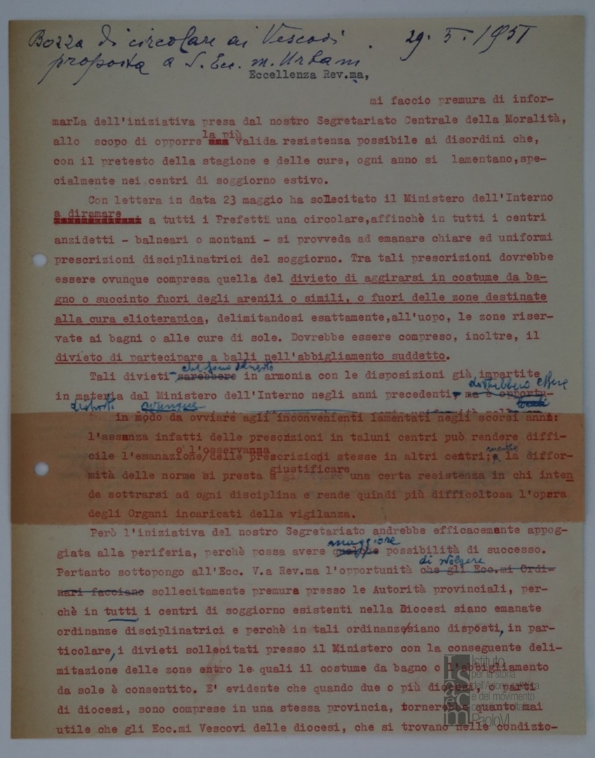 "Bozza di circolare ai vescovi proposta a sua Ecc. mons. Urbani"