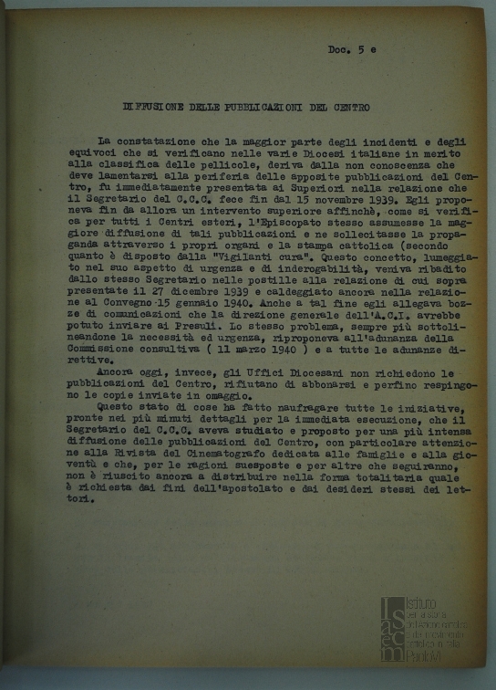 Relazione di Paolo Salviucci sulle attività del Centro cattolico cinematografico - CCC