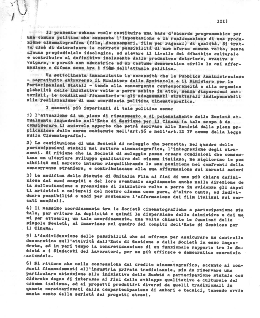 Schema di accordo programmatico per la programmazione cinematografica. Terza bozza