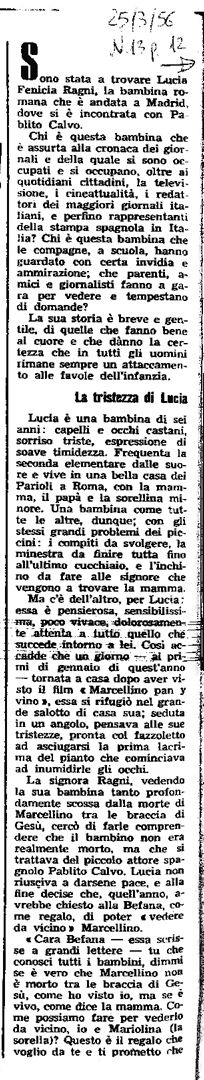"Abbiamo visitato la bambina che è andata a trovare Marcellino: Lucia Ragni"