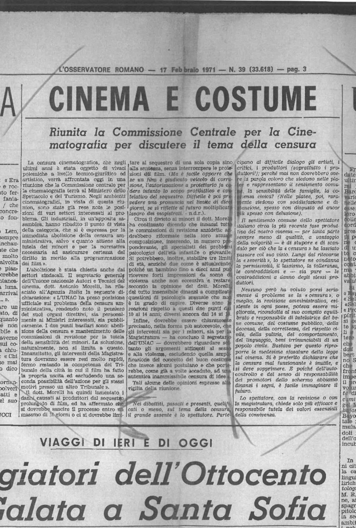 Verbale della riunione del 17 febbraio 1971 della Commissione centrale per la cinematografia