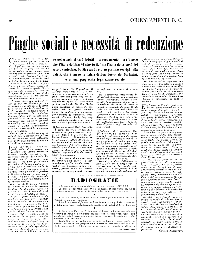 "Se ci rubano la bicicletta la colpa è di De Gasperi"
