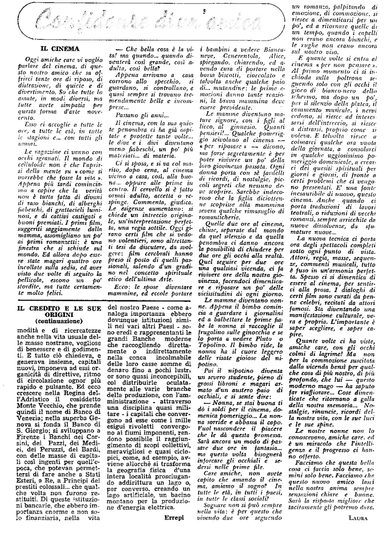 "Appunti per una nuova strutturazione dell'ordinamento delle settimane cinematografiche dei cattolici"