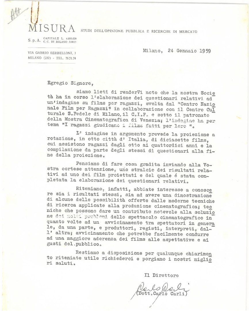 Invito della Arco Film srl indirizzato a Silvano Battisti, segretario generale dell'ACEC