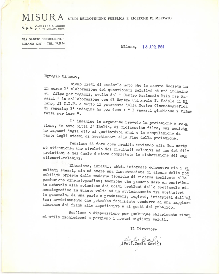 Invito della Arco Film srl indirizzato a mons. Francesco Dalla Zuanna, presidente dell'ACEC