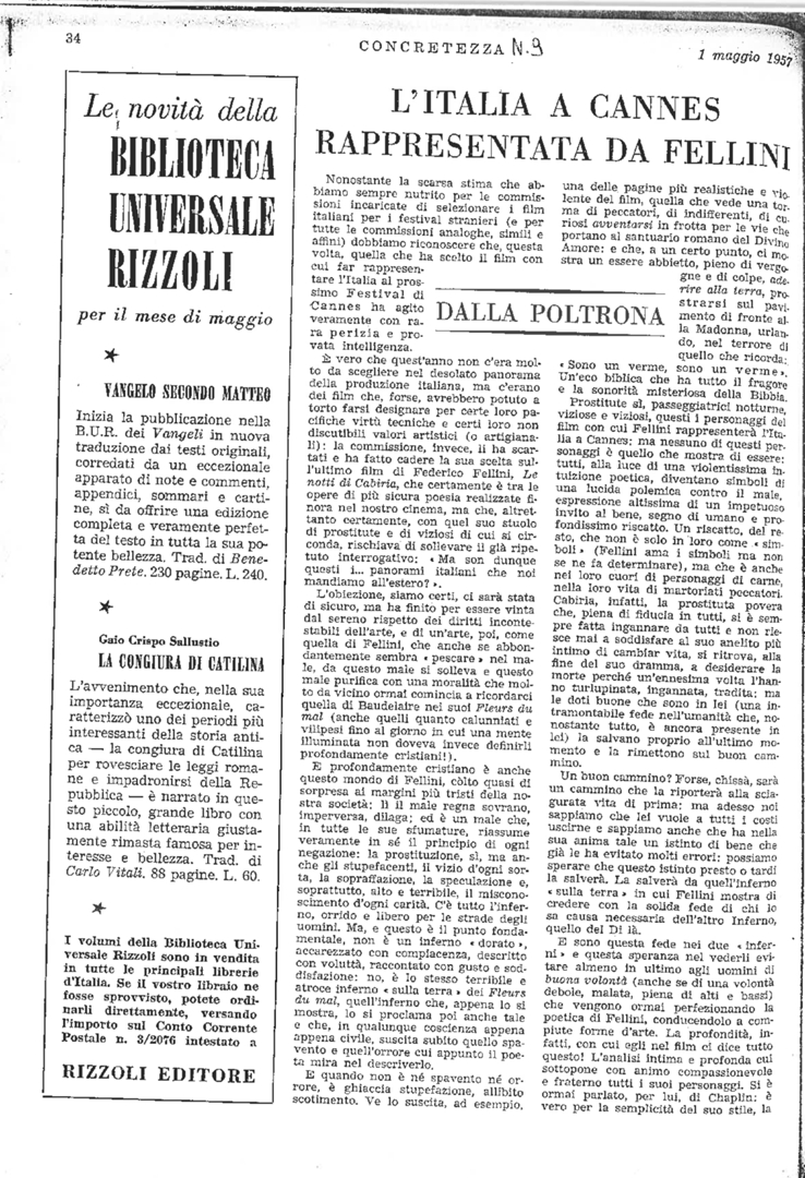 "L'Italia a Cannes rappresentata da Fellini"