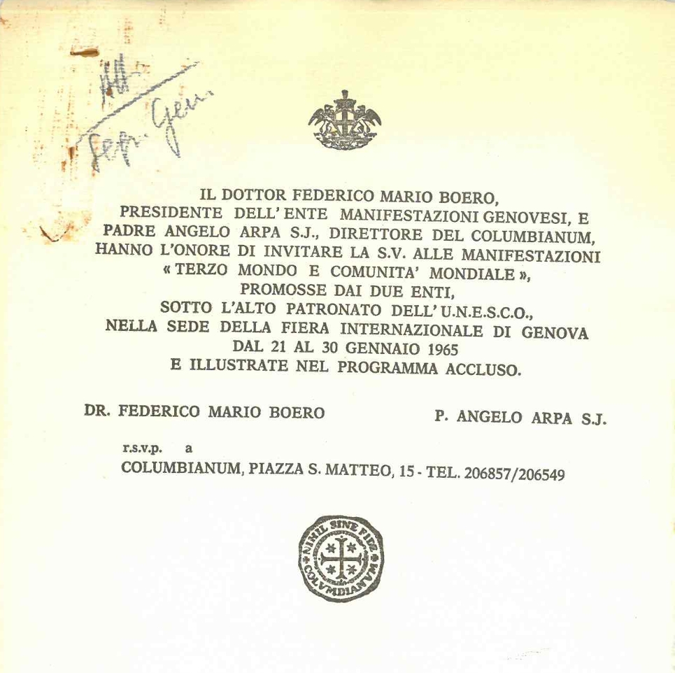 Terzo mondo e comunità mondiale, Genova, 21-30 gennaio 1965