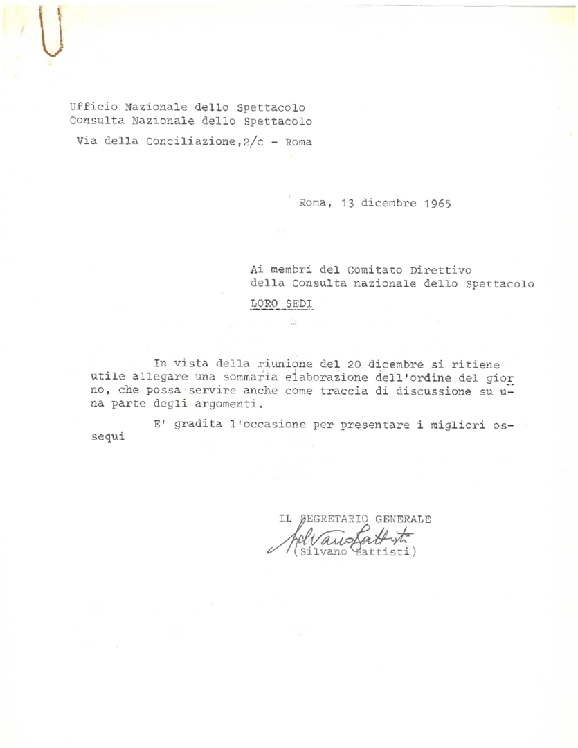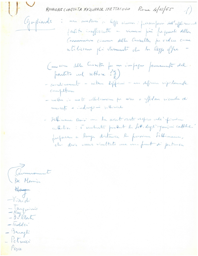 Riunione della Consulta nazionale dello spettacolo, Roma, 20 dicembre 1965