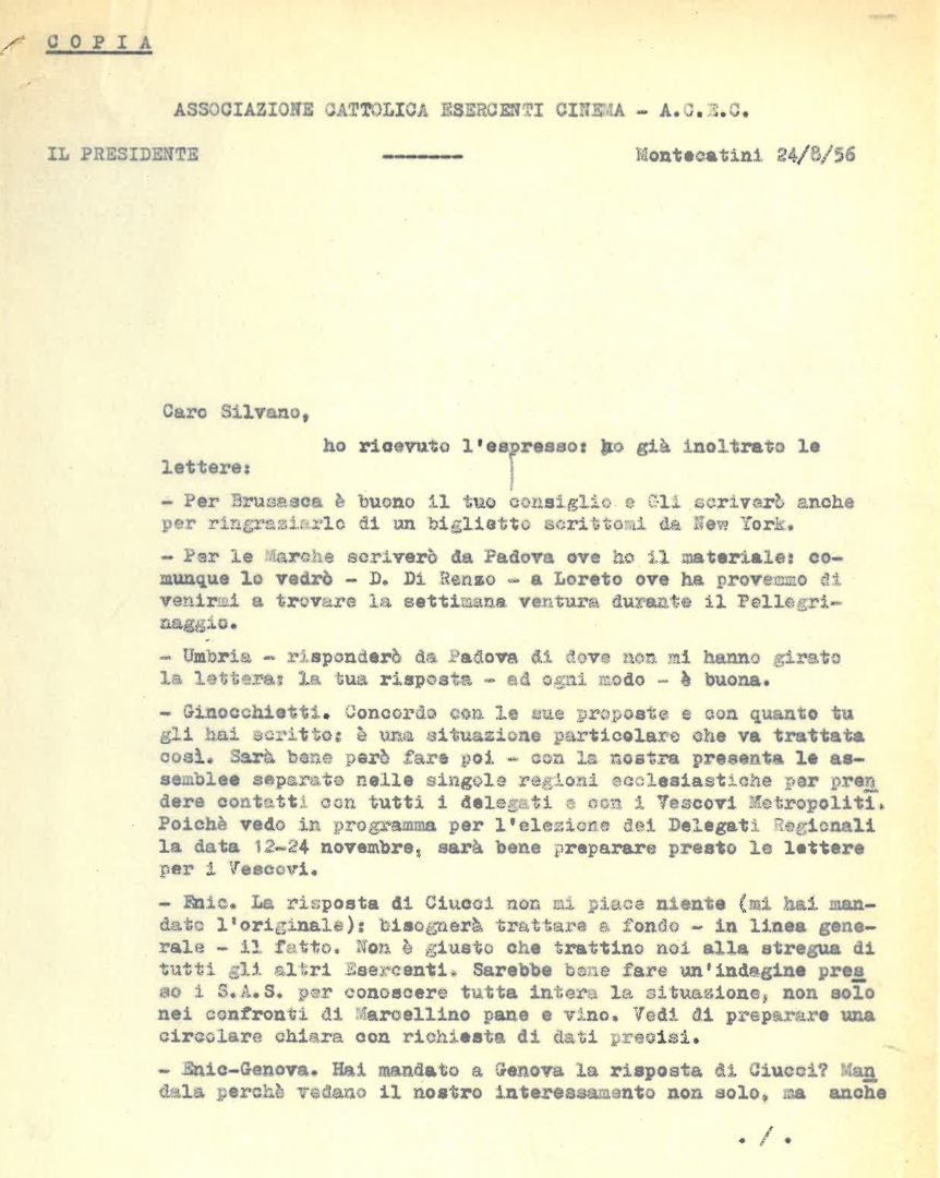 I cattolici e il cinema in Italia tra gli anni '40 e gli anni '70 Istituto Luigi Sturzo Fondo Giulio Andreotti Serie Cinema