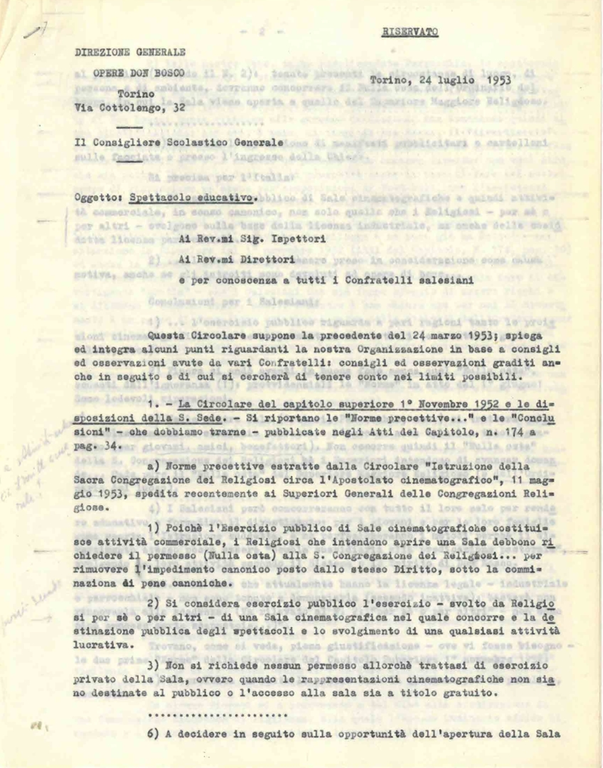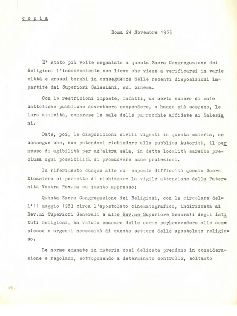 Disposizioni sulle sale cinematografiche parrocchiali e sull'apostolato cinematografico