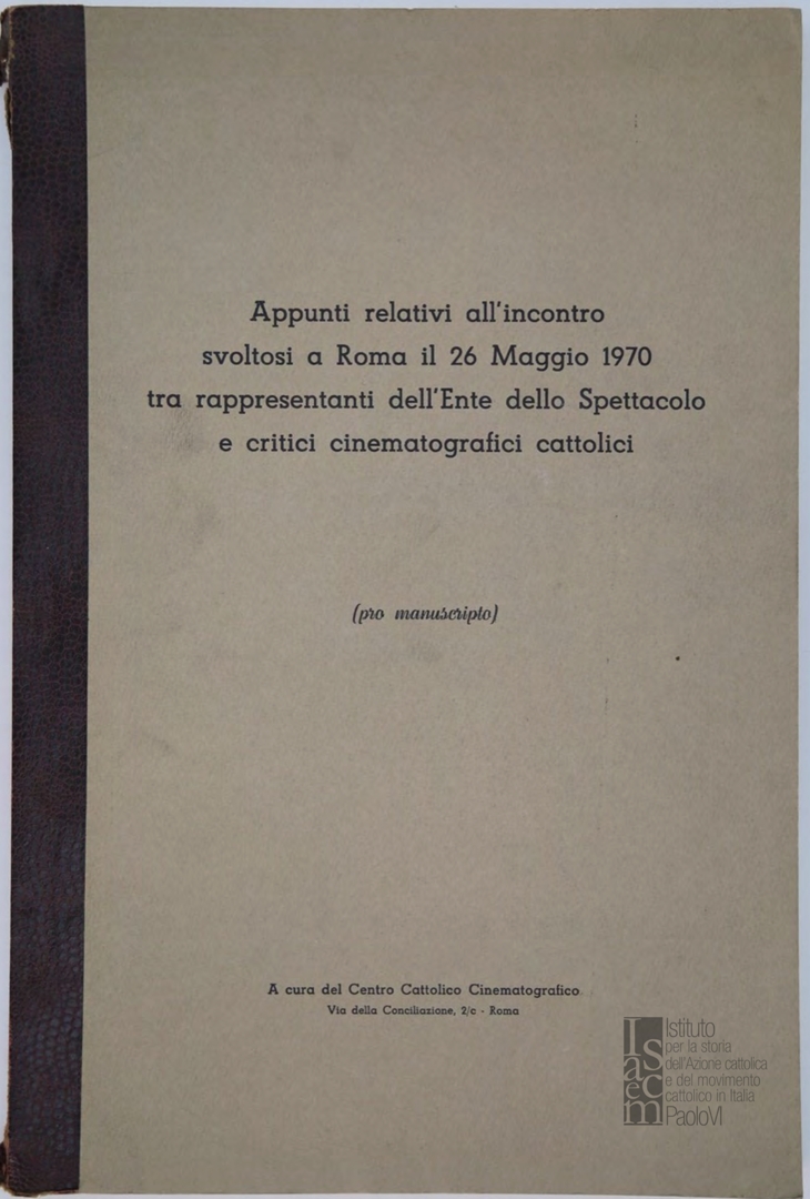 "Appunti relativi all'incontro svoltosi a Roma il 26 maggio 1970 tra rappresentanti dell'Ente dello Spettacolo e critici cinematografici cattolici (pro manuscripto)"